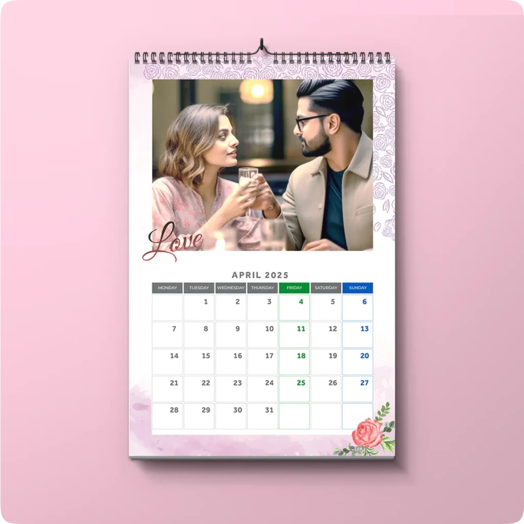 Our photo calendars serve as personalized works of art that serve as a reminder of your most treasured moments, in addition to being useful tools for scheduling. Our premium calendars, which are printed using reputable online digital printing services, come in a classic 12″ x 18″ format to meet your needs and keep you motivated and organized throughout the year. Enjoy 50+ sophisticated designs for each season, all skillfully created by our design team. Using the magic of your memories, create a personalized photo calendar that makes you smile all year long.