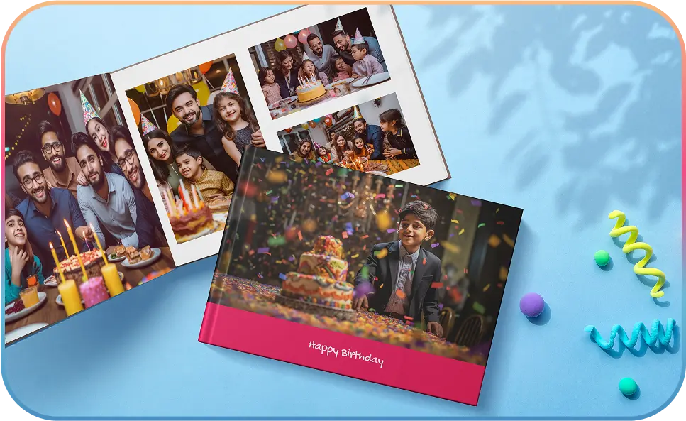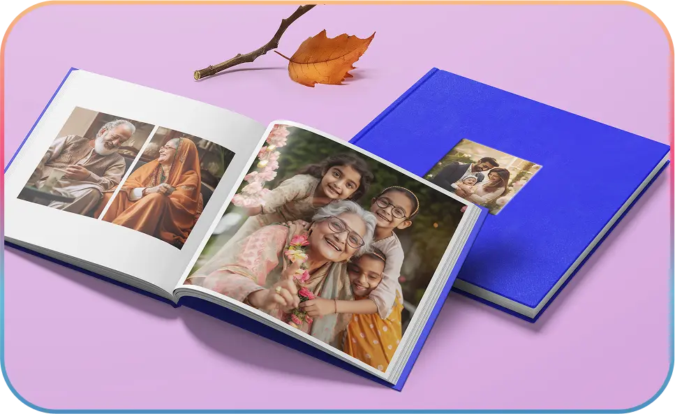 While themed photo books provide pre-designed templates for ease, custom photo books allow complete creative control over every page, enabling you to craft a fully personalized narrative. Choose elegant linen or leather feel covers for premium look or printed covers for chic modern look. It’s all up to you.